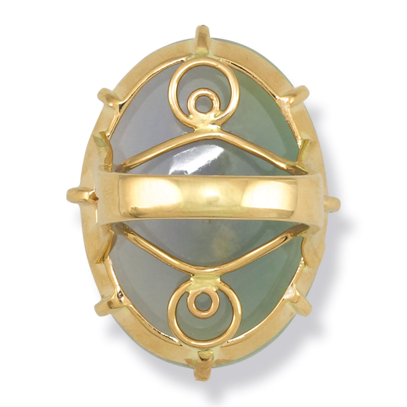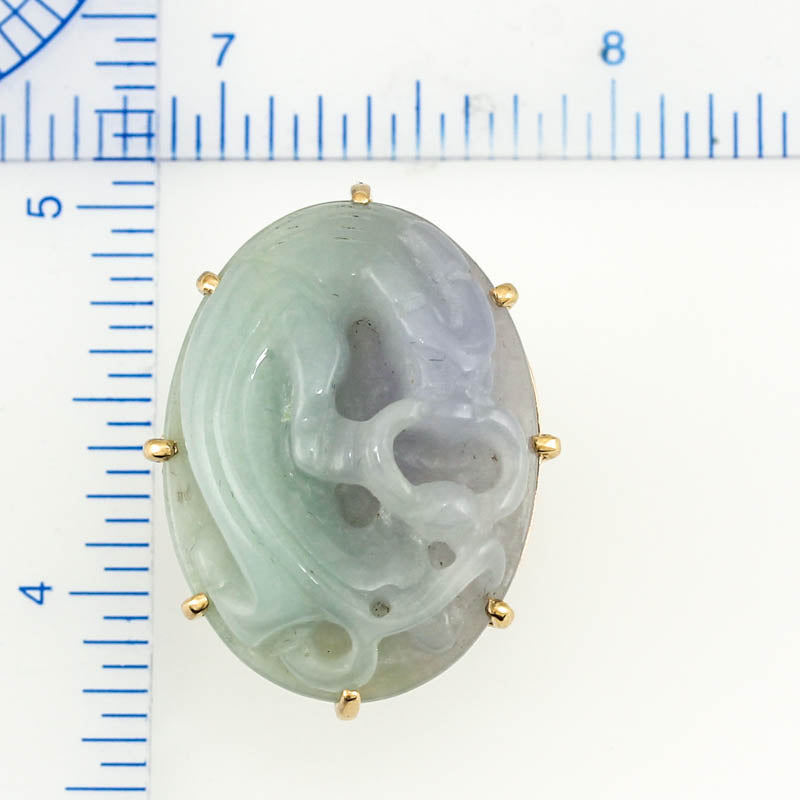 14K Yellow Gold Green and Lavender Jadeite Jade Dragon Carving Ring | UPC #373815