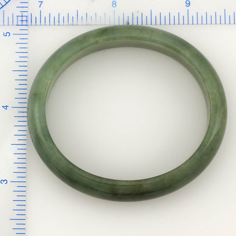 This distinctive Mason-Kay bangle presents a stunning deep green shade. Its half-round, single-piece oval shape is expertly crafted to fit very small wrists and hands, creating a truly remarkable piece of wearable art.