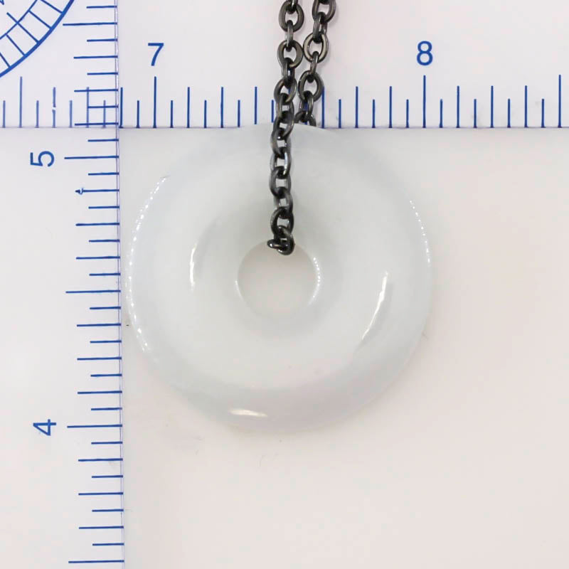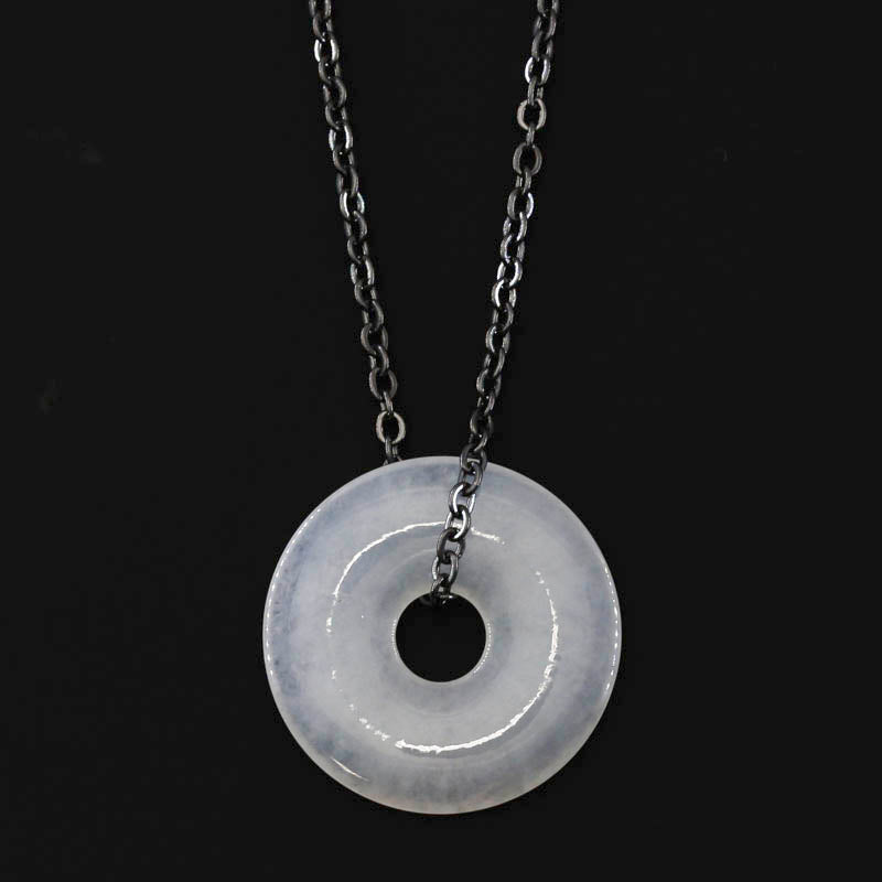 While not technically "ice jade," this white jadeite jade disc pendant on oxidized steel chain has an "icy" quality to it - meaning it's somewhat translucent.
