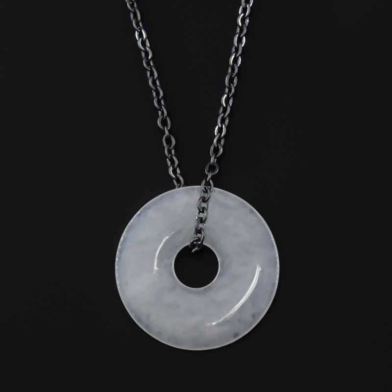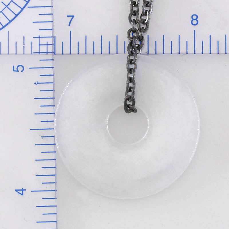 White Jadeite Jade Disc Necklace on Oxidized Steel Chain | UPC #399563