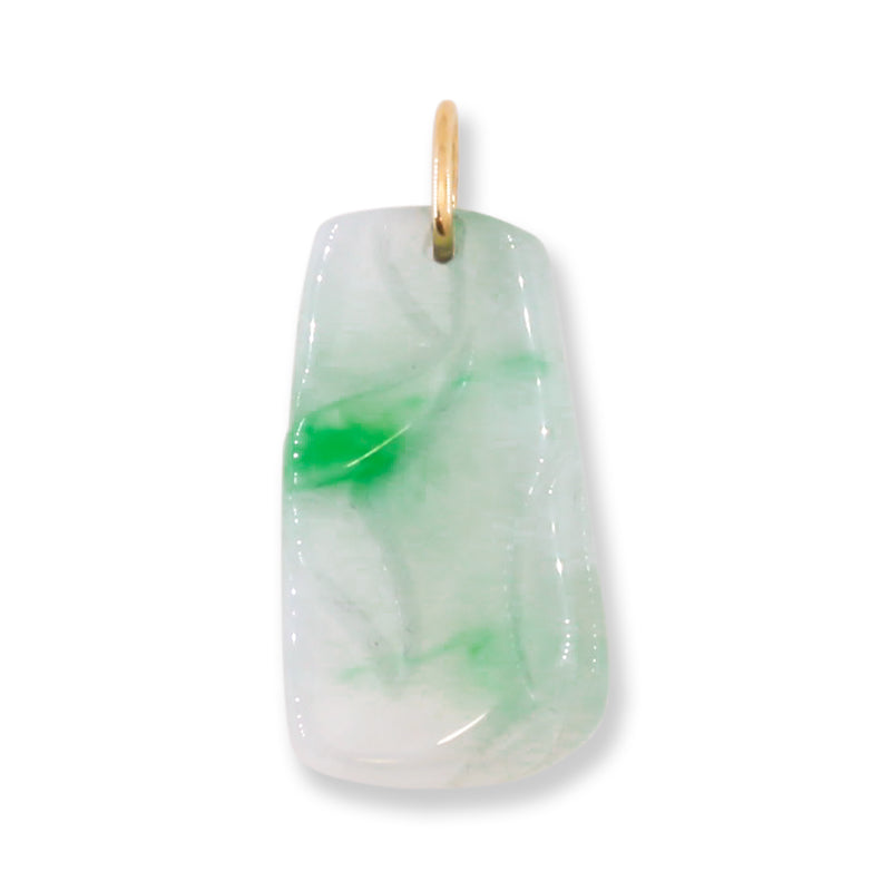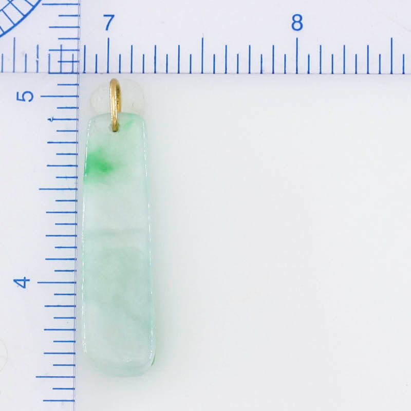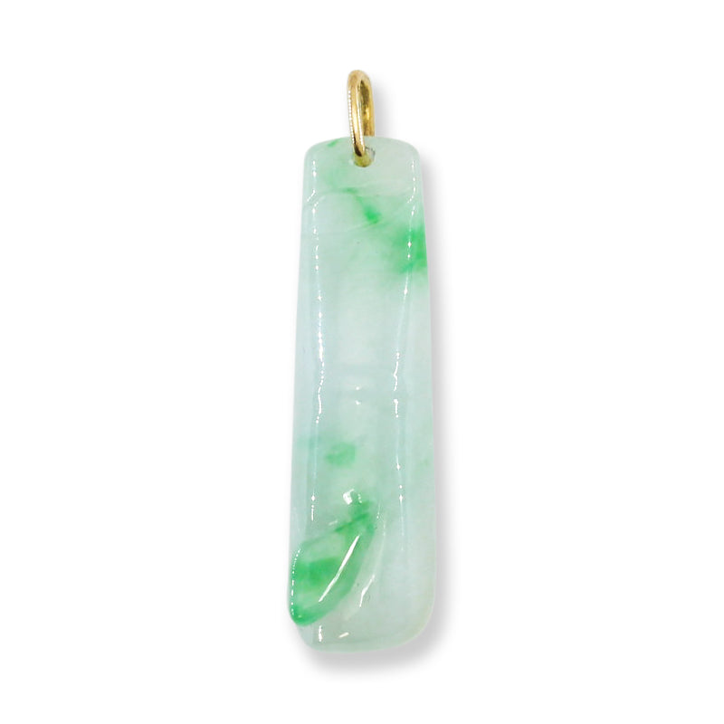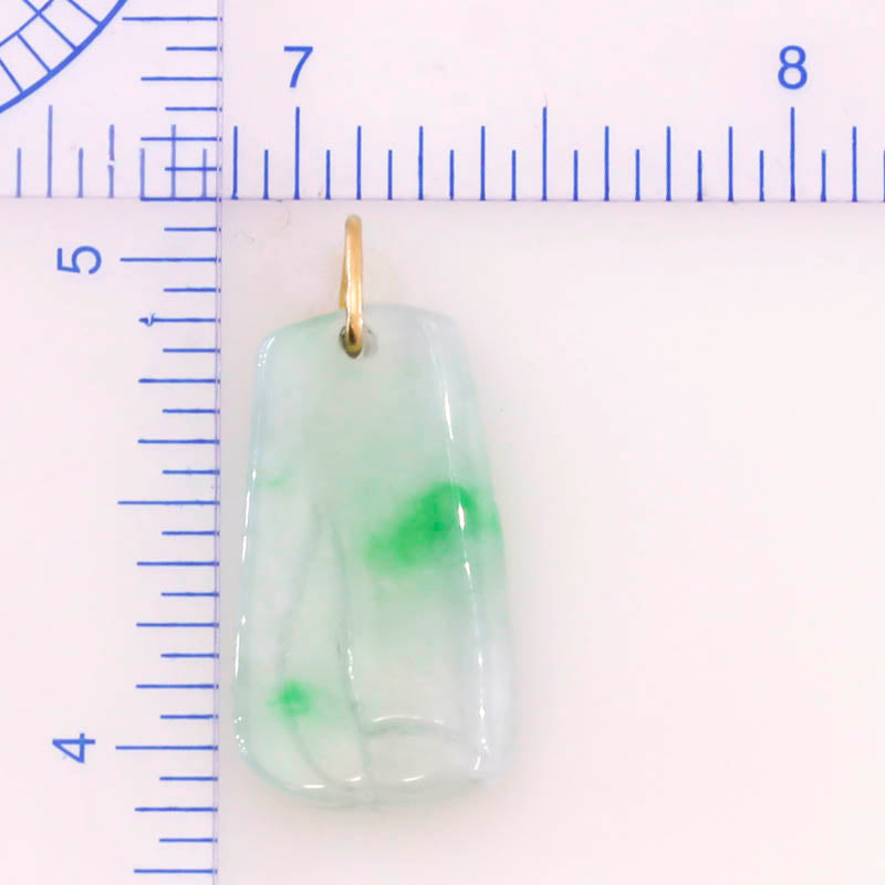 Green and White Jadeite Jade Carved Bamboo 14K Yellow Gold Pendant | UPC #217904