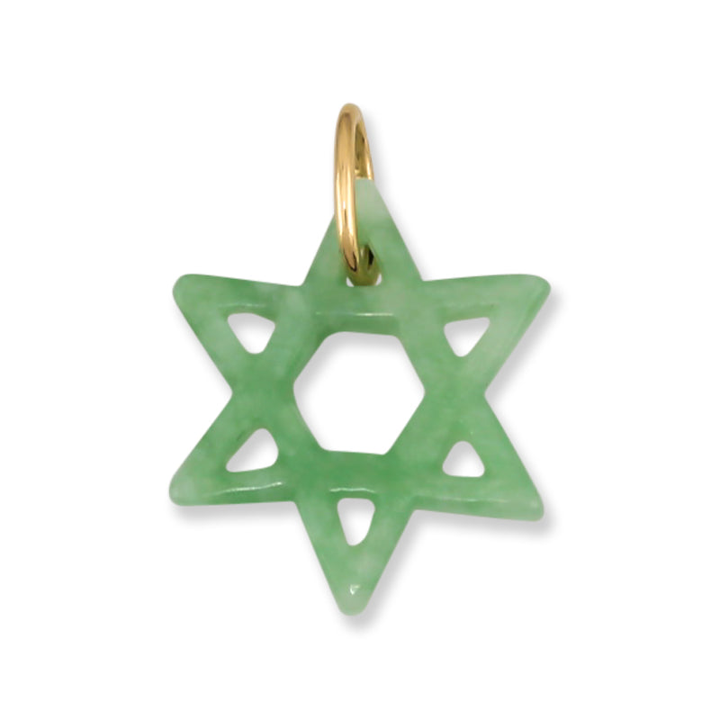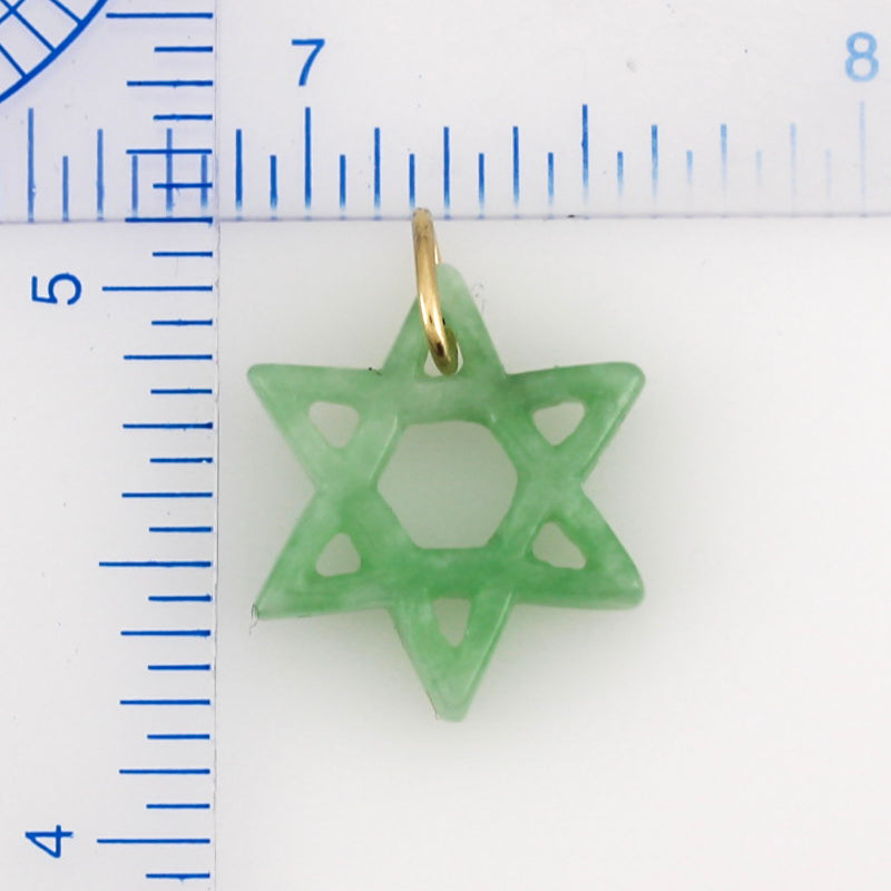 14K YELLOW GOLD GREEN JADEITE JADE STAR OF DAVID PENDANT UPC #374379