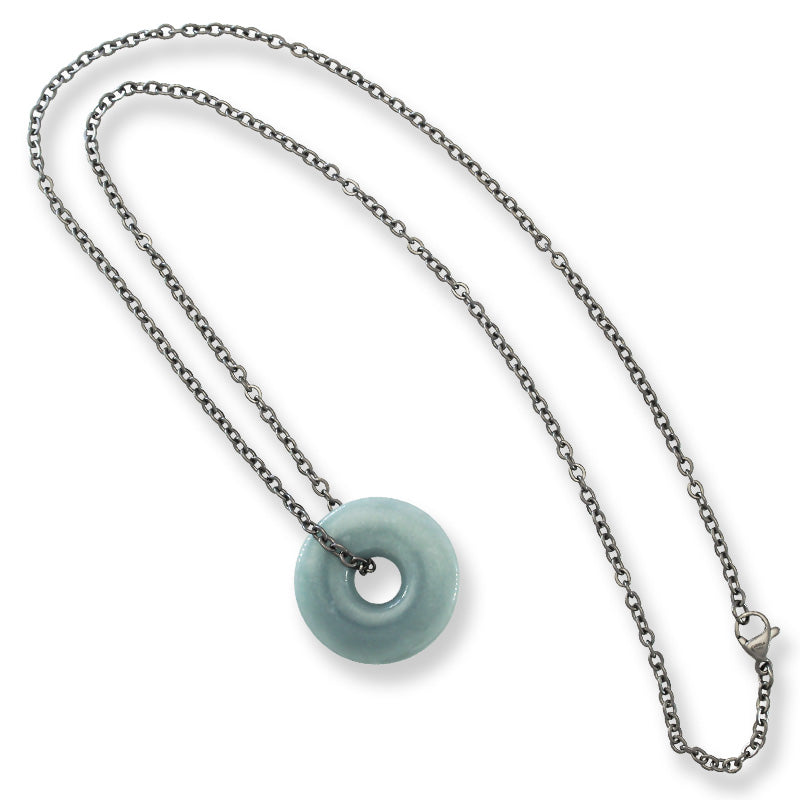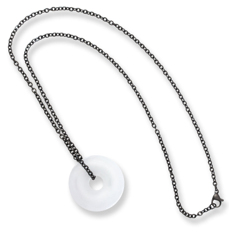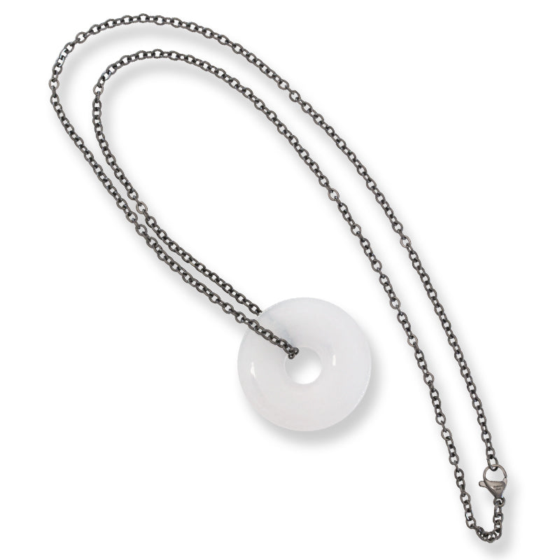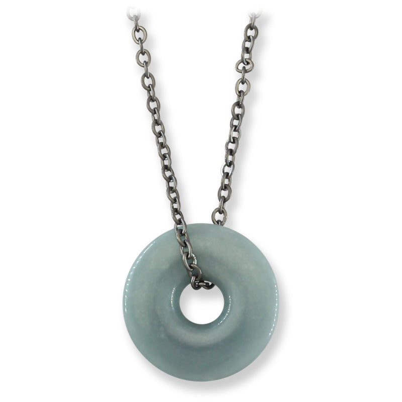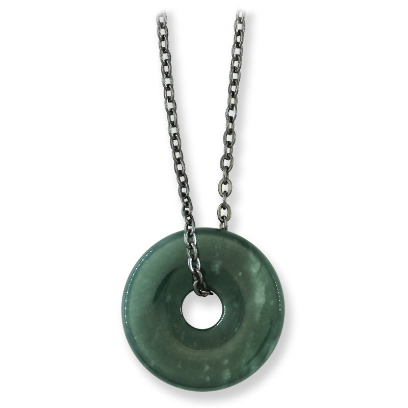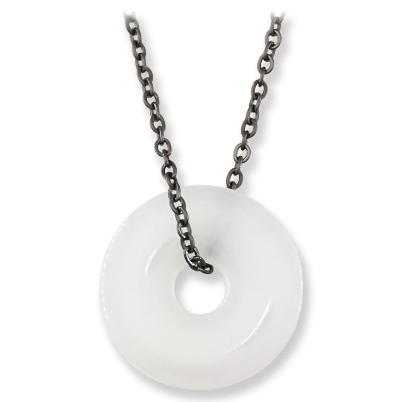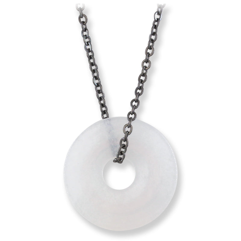 White Jadeite Jade Disc Necklace on Oxidized Steel Chain | UPC #399563