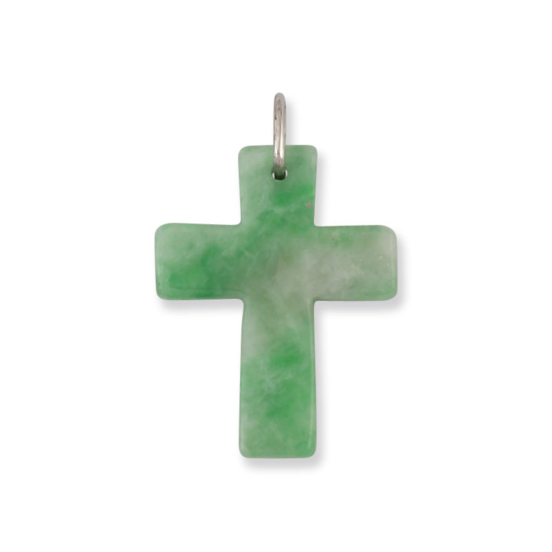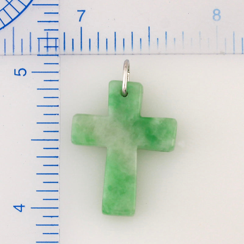 14K White Gold Green Jadeite Jade Cross Pendant | UPC #353756