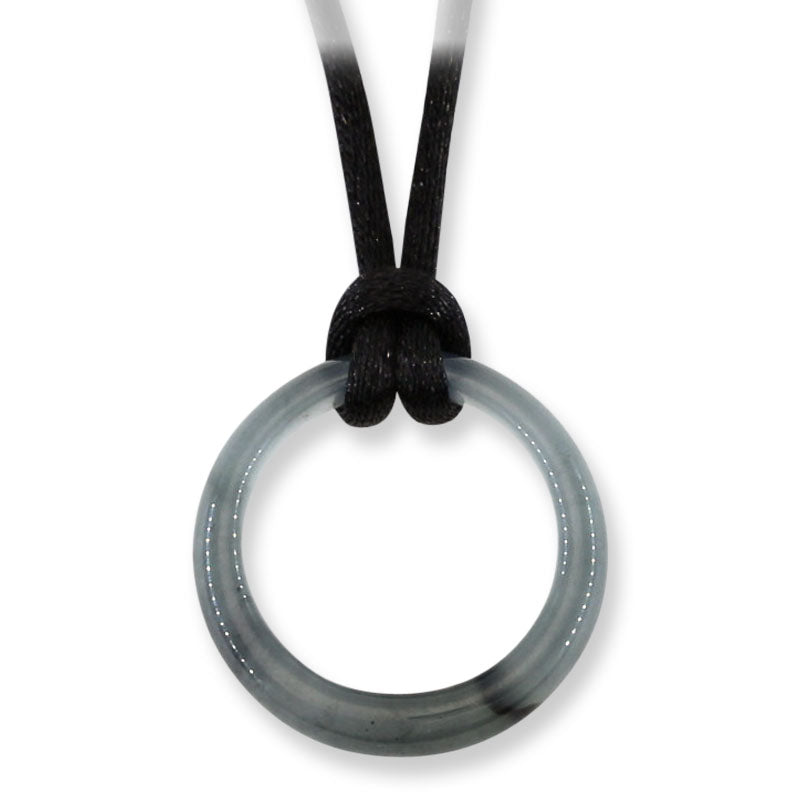 Blue Green Jadeite Jade Circle Adjustable Cord Necklace | UPC #395060