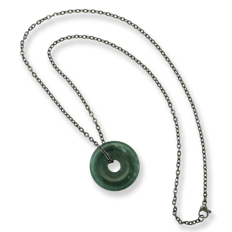 Blue Green Guatemalan Jadeite Jade Pi Disc Necklace | UPC #399464
