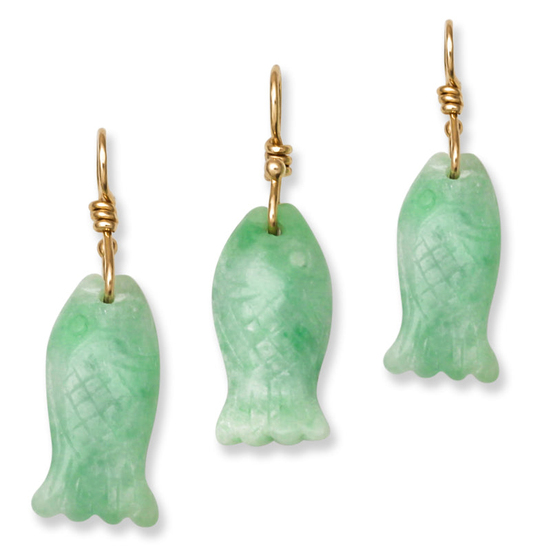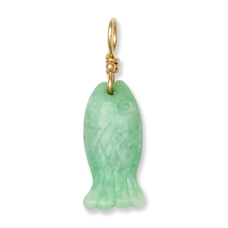 GREEN JADEITE JADE CARVED FISH 14K YELLOW GOLD PENDANT UPC #174528