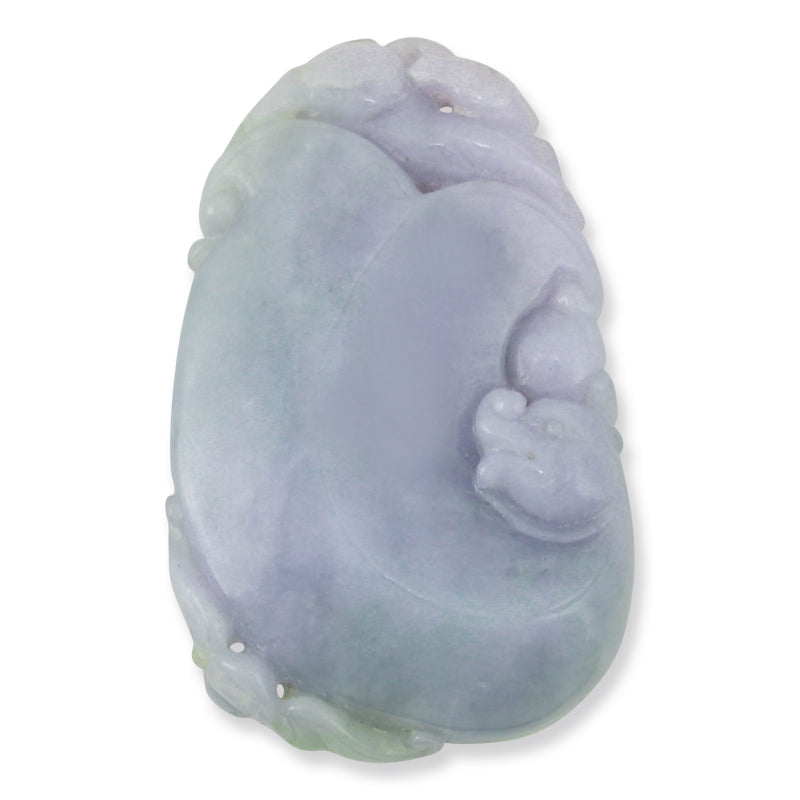 Lavender Jadeite Jade Dragon Carving with Horse and Bat Motif | UPC #397897