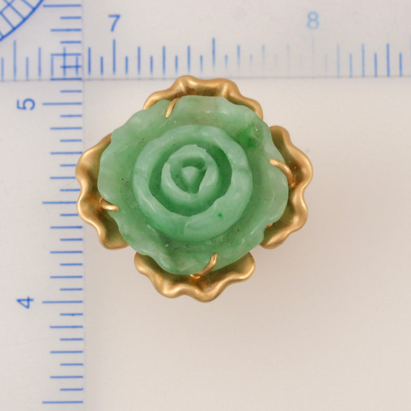 14K YELLOW GOLD GREEN JADEITE JADE CARVED FLOWER RING UPC #389953