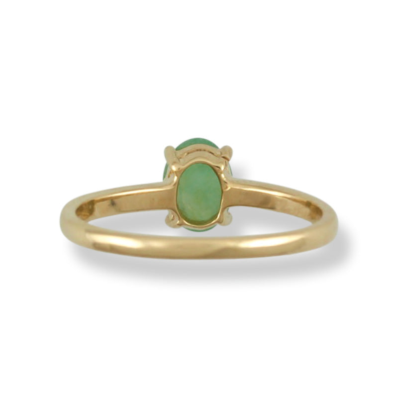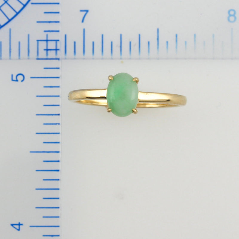 Timeless Elegance! Ideal for women as an everyday ring or jade engagement ring, especially great for stacking. Featuring a certified jadeite jade oval cabochon, securely set in a traditional four-prong 14K yellow gold band.