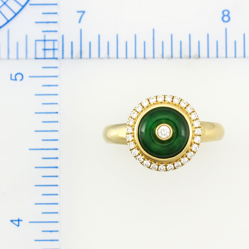 • 18K YELLOW GOLD GREEN JADEITE JADE AND DIAMOND DISC RING UPC #340008