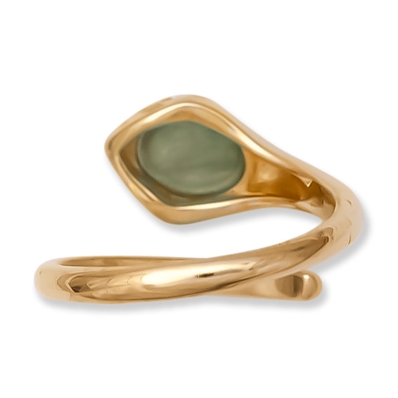 • Green Jadeite Jade Snake Ring Bypass-Style in 14K Yellow Gold | UPC #395701