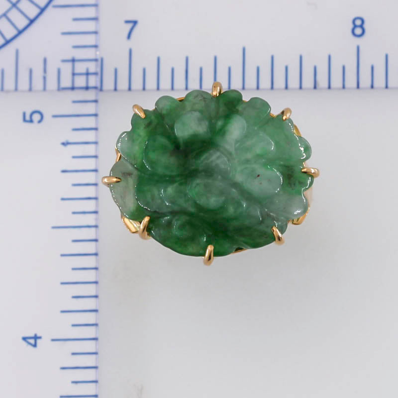 • Green Jadeite Jade Carved Floral 14K Yellow Gold Ring | UPC #395688