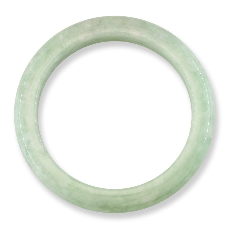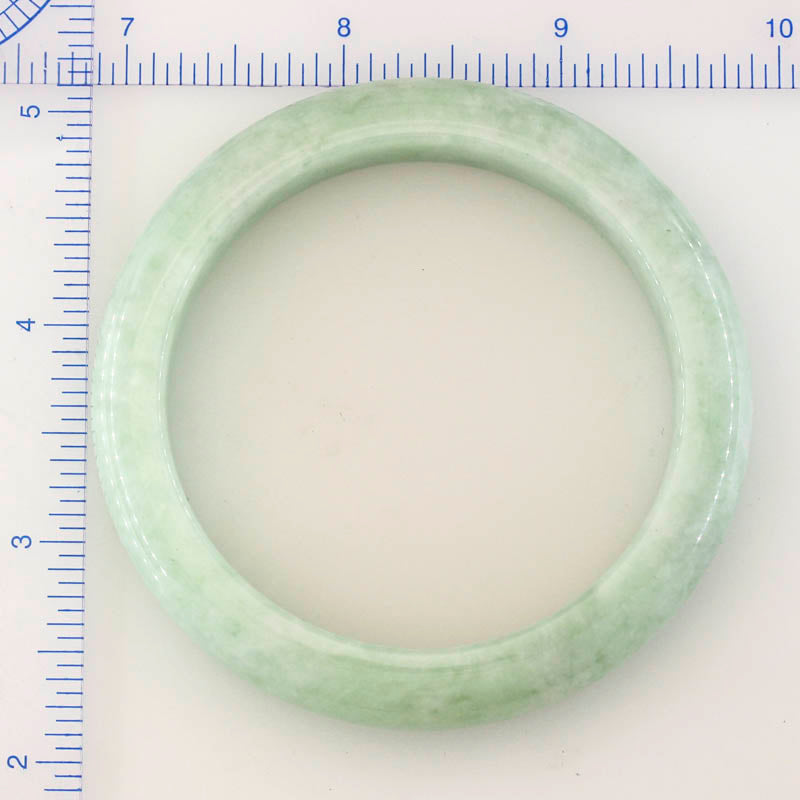 Discover the elegance of this light green jadeite jade bangle, crafted with a thicker half-round design for a bold, sophisticated look.