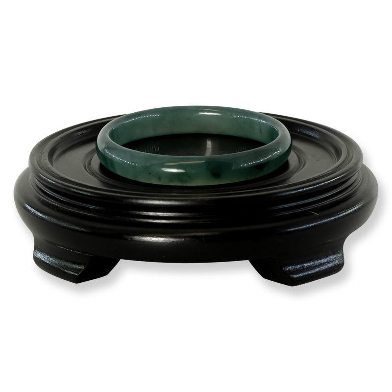 This natural jade bangle bracelet has natural blue-green jade color.  Our jadeite jade is natural, meaning it has NO dyes and NO polymer-impregnation. Some of our pieces may have a thin coating of beeswax to protect the surface of the jade. This does not affect the appearance or value of the stone.