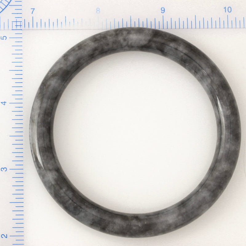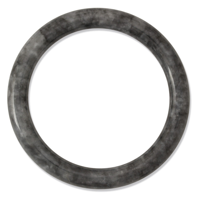 Experience perfect balance with this cylindrical medium grey jadeite bangle! Measuring 9.1mm thick and with an inside diameter of 62.6mm, it is a powerful symbol of harmony.