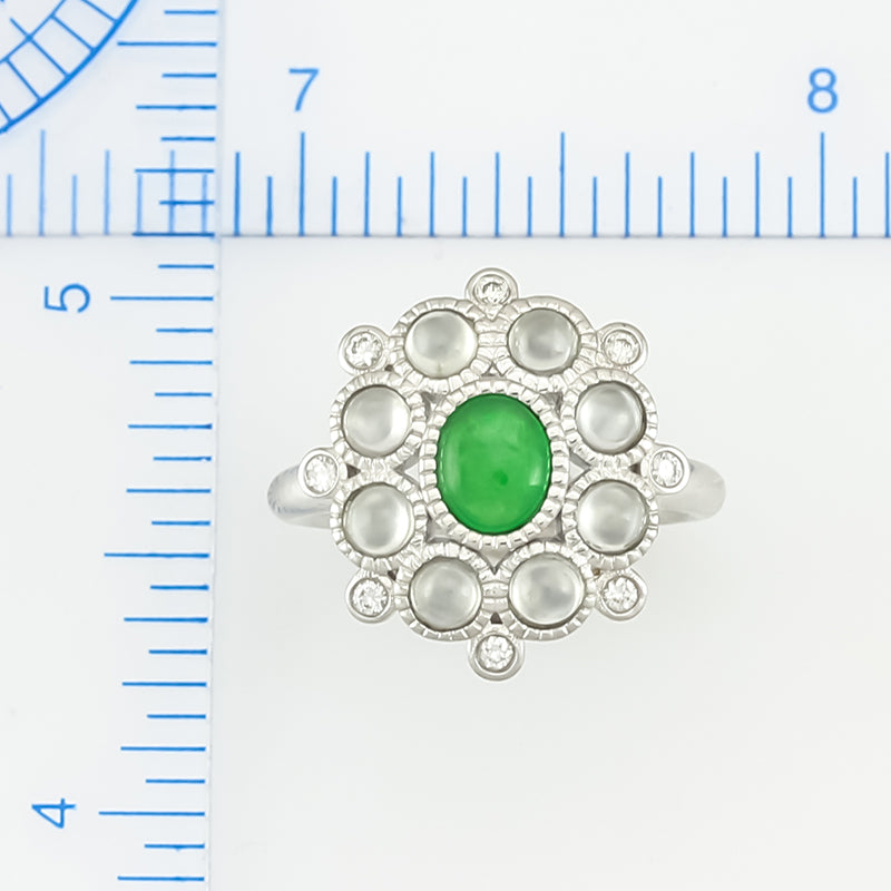 • 18K White Gold Designer Green and Ice Jadeite Jade Ring | UPC #341685