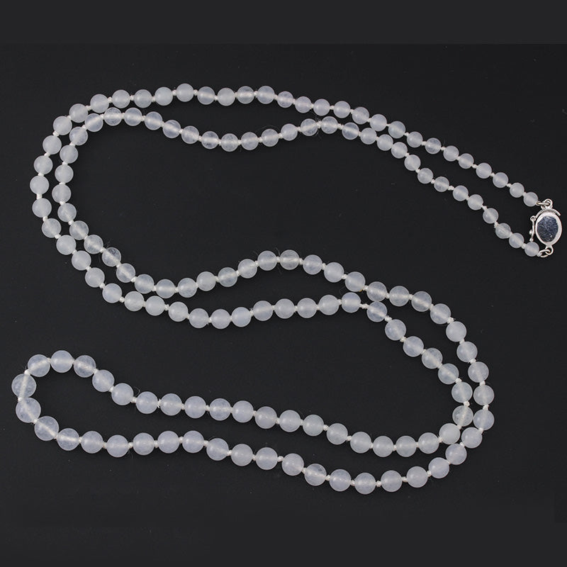 Natural ice jade bead necklace with one hundred forty-eight beads ranging from 3.5mm to 6mm and an 18K white gold Mason-Kay Signature Clasp. Shop natural jade jewelry from Mason-Kay Jade for your jade jewelry collection.