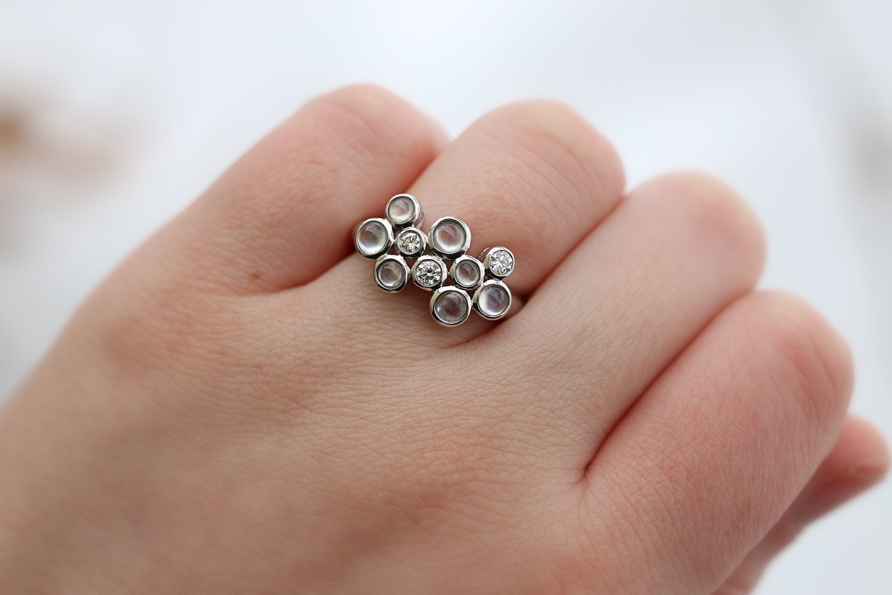 18K WHITE GOLD ICE JADEITE JADE & DIAMOND 'BUBBLE' STYLE RING UPC #341760