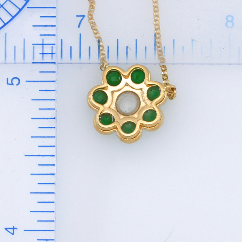 Part of our Designer Jade Collection, this floral-inspired green jade necklace features fine-quality jadeite jade in 18K yellow gold bezels with milgrain. The pendant is static and attached to the chain, which has a jump ring at the 16" mark so it can be worn as either 16" or 20".
