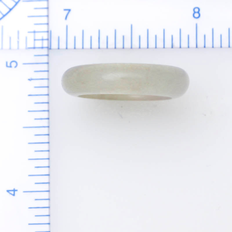 This solid translucent ice jadeite jade band crafted from a single piece of jade offers a unique choice for both men and women. It serves as a striking alternative to the classic gold wedding band. The stone’s natural translucency means its look can change subtly with different lighting, adding a dynamic and captivating element to your ring. Highly translucent jade rings are tougher (more resistant to breaking) but should still be handled with care. Do not drop on cement or tile.