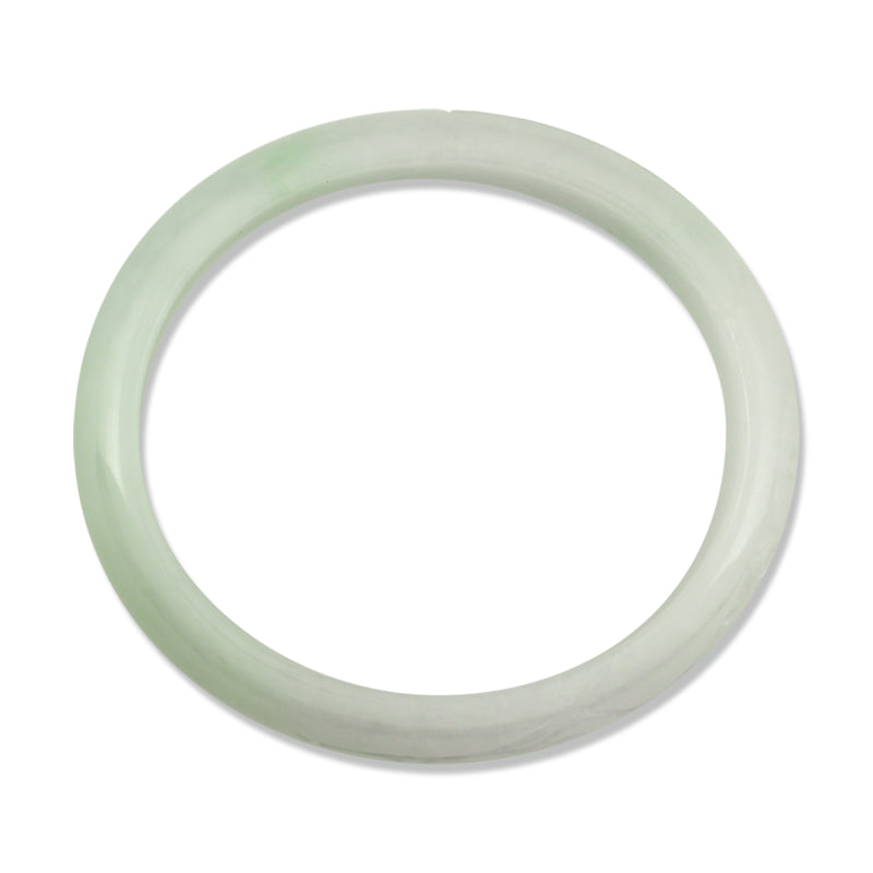 This natural jade bangle bracelet has natural lavender jade color. Our jadeite jade is natural, meaning it has NO dyes and NO polymer-impregnation. Some of our pieces may have a thin coating of beeswax to protect the surface of the jade. This does not affect the appearance or value of the stone.