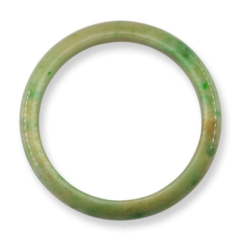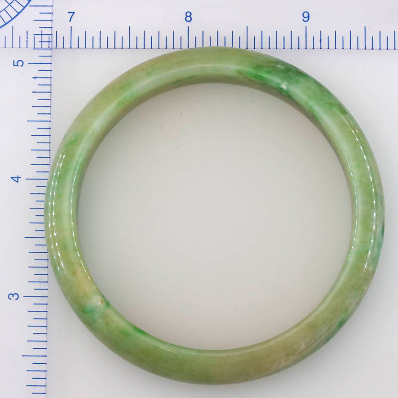 This natural jade bangle bracelet has natural green jade color. Our jadeite jade is natural, meaning it has NO dyes and NO polymer-impregnation. Some of our pieces may have a thin coating of beeswax to protect the surface of the jade. This does not affect the appearance or value of the stone.