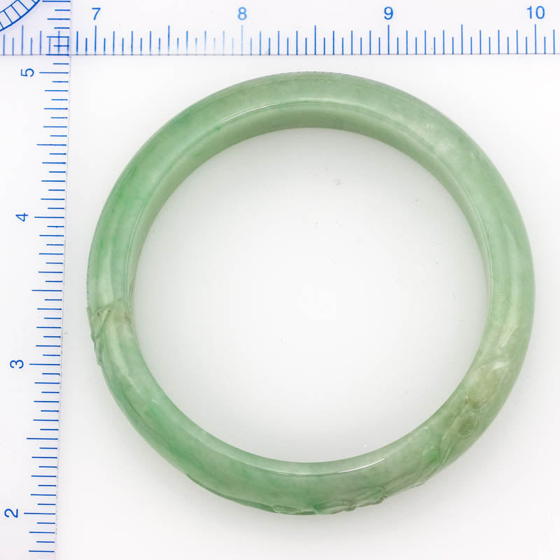 Green Carved Jadeite Jade Half Round Bangle 59.7mm |UPC #375376