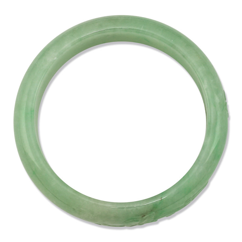 Experience the exquisite beauty of our Hand-carved Green Jadeite Jade Bangle in a stunning half round design. Each bangle features delicate floral carvings and a natural apple green hue, making it a truly unique and special piece. With an inside diameter of 59.7mm, it's the perfect fit for anyone who appreciates the beauty and energy of jade. Add this bangle to your collection and elevate your style with its captivating color and craftsmanship.