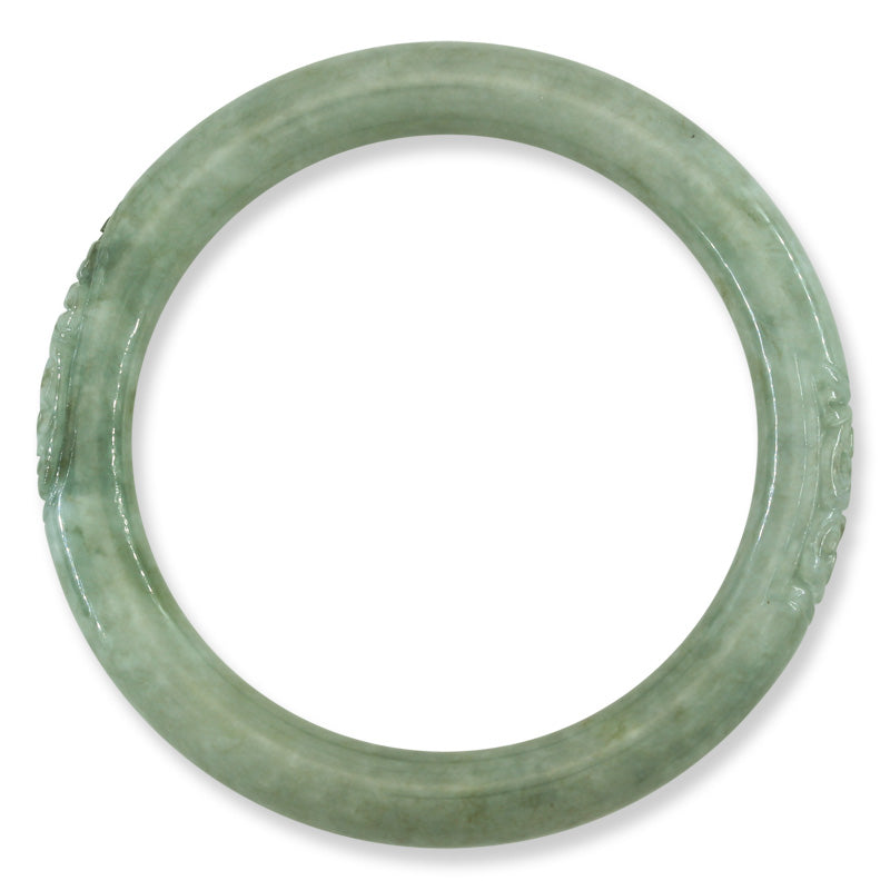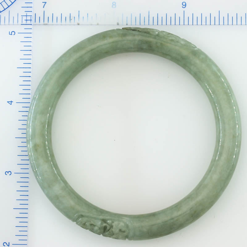Green Jadeite Jade Carved Cylindrical Bangle | Size 58.2MM | UPC #393837