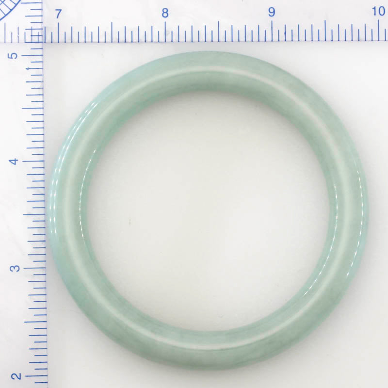 This natural jade bangle bracelet has natural green jade color. Our jadeite jade is natural, meaning it has NO dyes and NO polymer-impregnation. Some of our pieces may have a thin coating of beeswax to protect the surface of the jade. This does not affect the appearance or value of the stone.