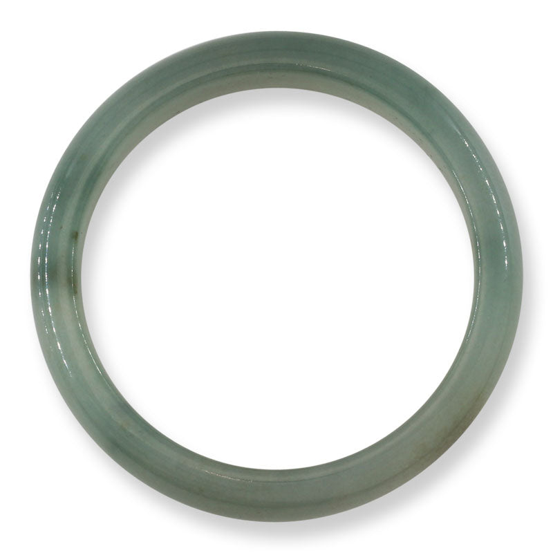 This elegant jadeite jade bangle showcases a translucent medium green color, making it a captivating accessory to elevate your style. This is a solid, continuous bangle.