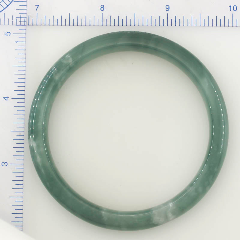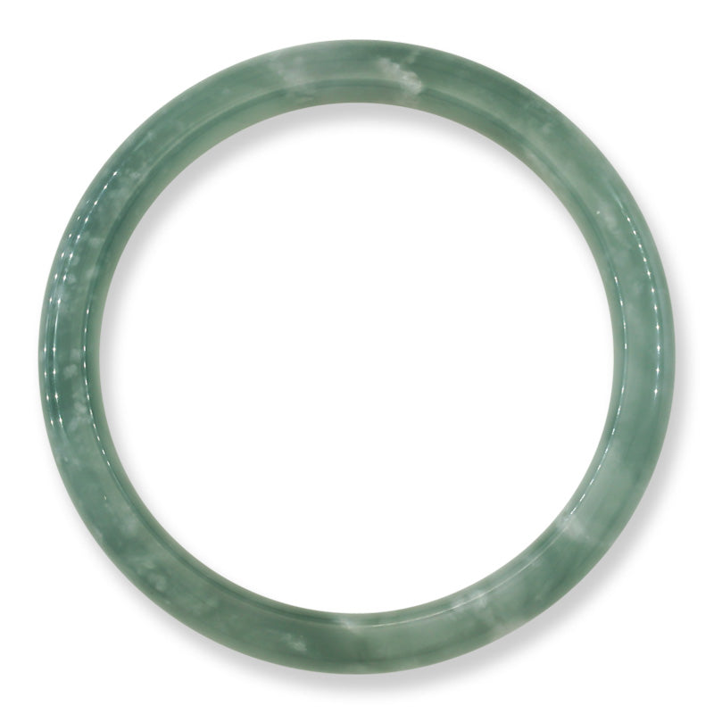This natural jade bangle bracelet has natural green jade color. Our jadeite jade is natural, meaning it has NO dyes and NO polymer-impregnation. Some of our pieces may have a thin coating of beeswax to protect the surface of the jade. This does not affect the appearance or value of the stone.