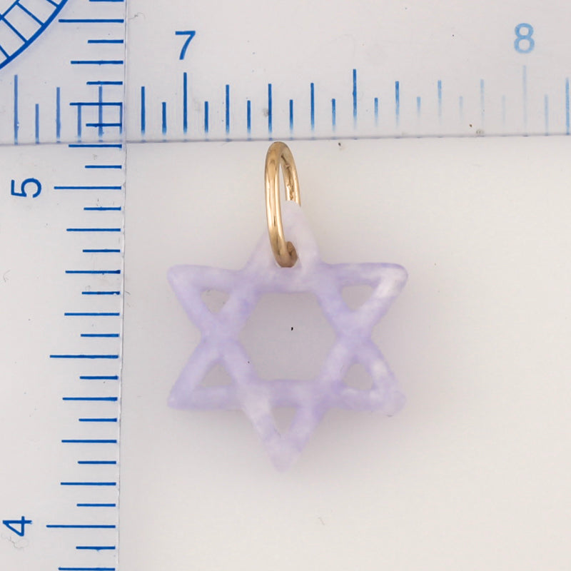 Hand-carved lavender jadeite jade Star of David with a 14K yellow gold oval loop bail. With Lavender representing strength this pendant is perfect for everyday wear. All Mason-Kay jade is natural, untreated type A Jadeite. Cert & Gift Wrap Included.