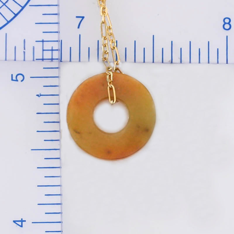 This stunning circle pendant features rich yellow jadeite jade and includes an 18-inch 14K yellow gold chain for a striking and elegant look.