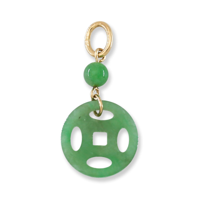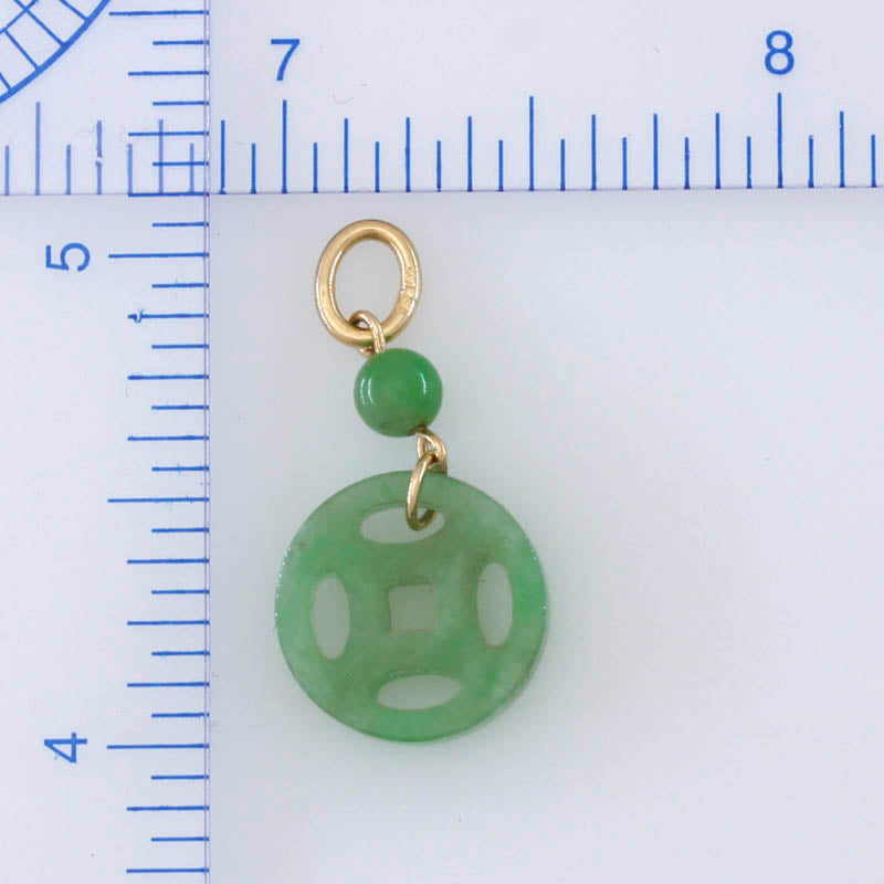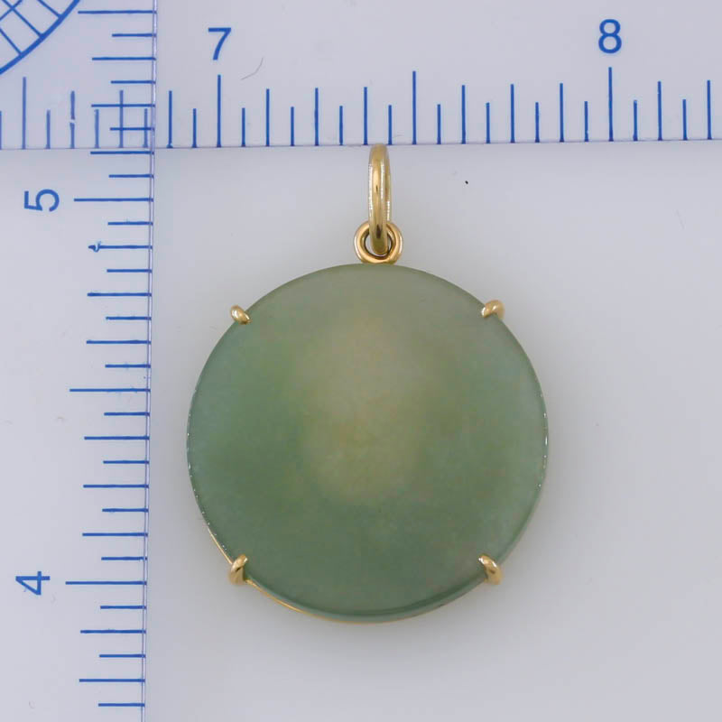 14K YELLOW GOLD GREEN JADEITE JADE CARVED COIN PENDANT UPC #395848