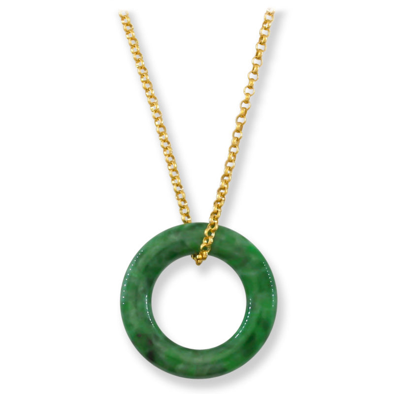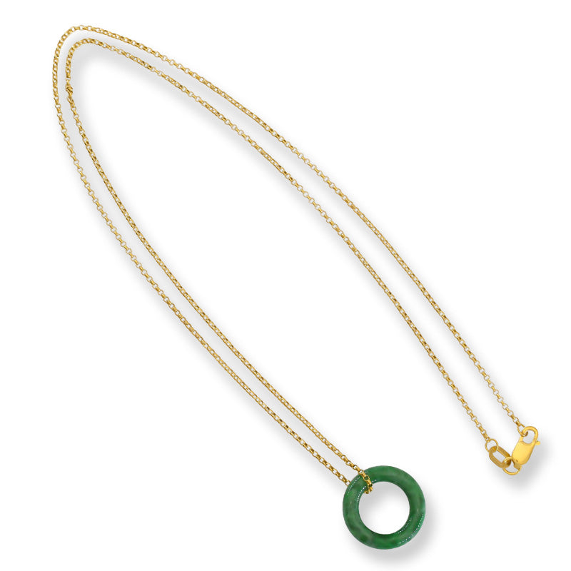 Green Jadeite Jade Circle Necklace on 14K Yellow Gold Chain | UPC #398849
