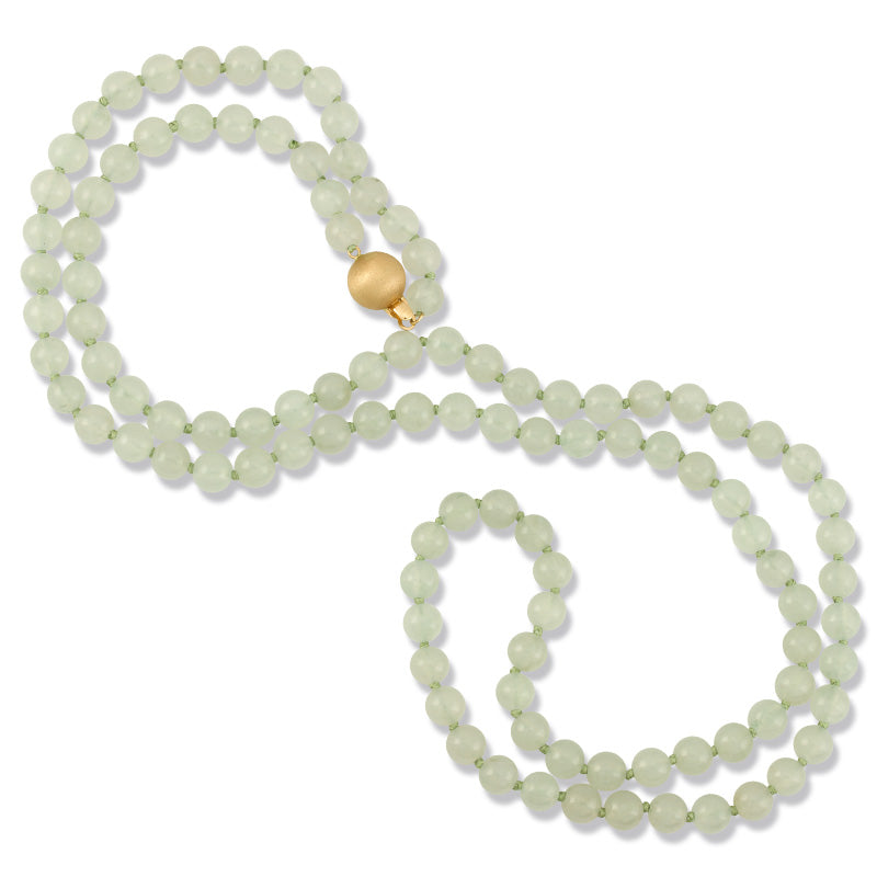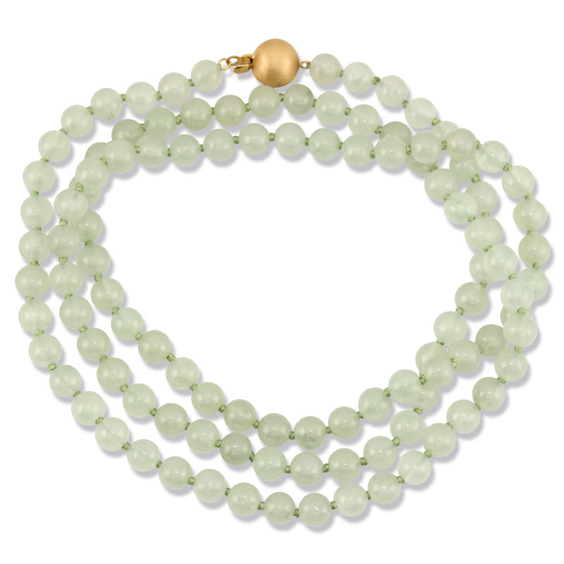 18K Yellow Gold Water Jadeite Jade Bead Necklace | UPC #375116