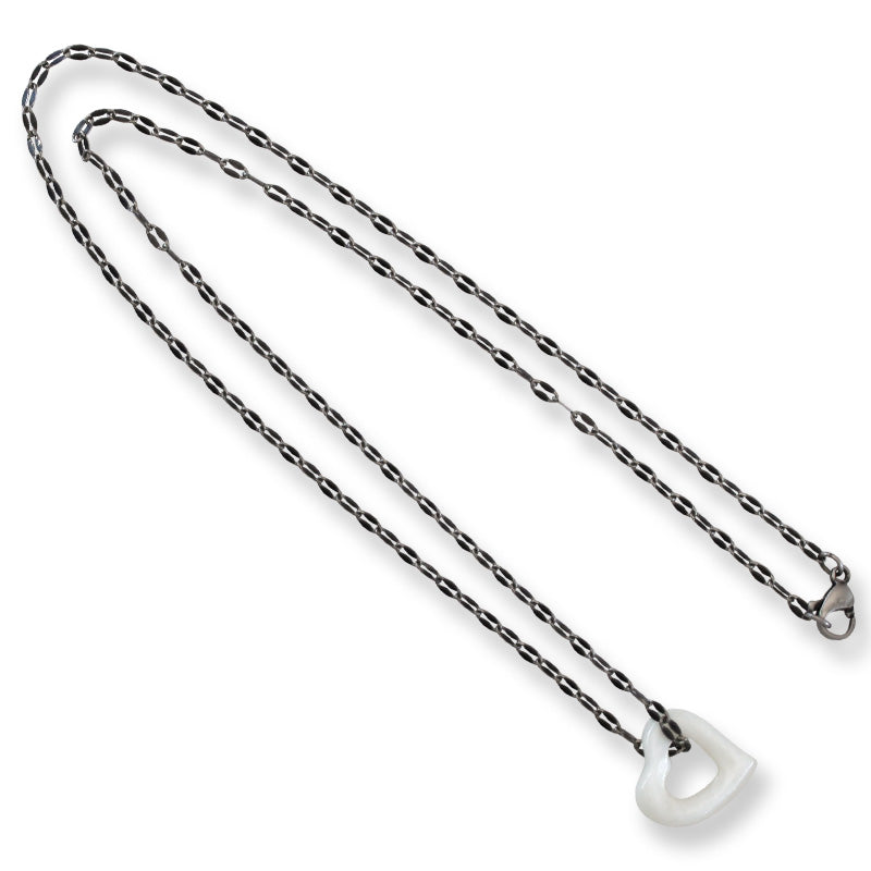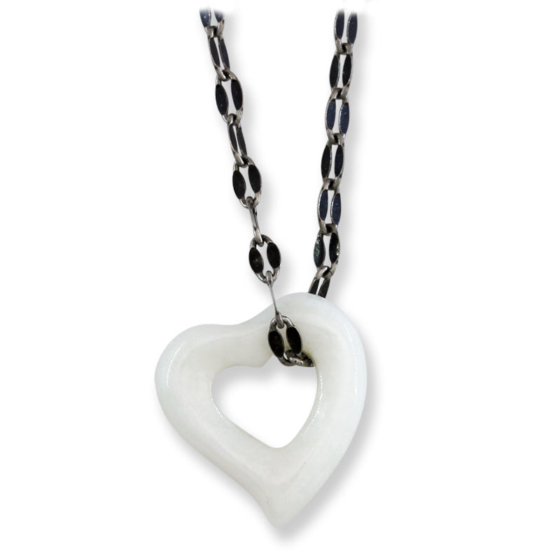 White Jadeite Jade Heart Pendant on 20" Steel Chain | UPC #398887