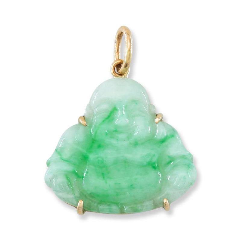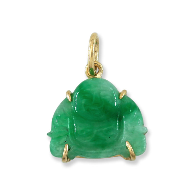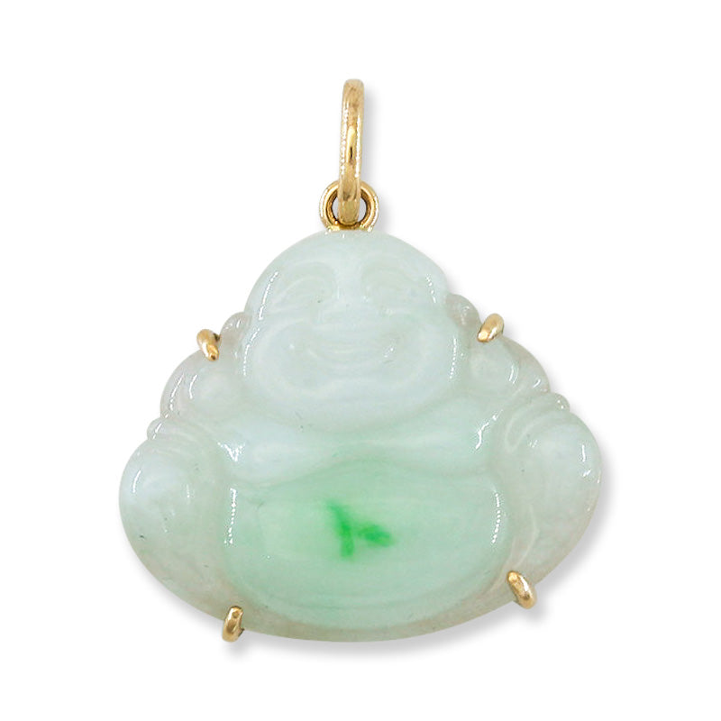 14K Yellow Gold Green and White Jadeite Jade Buddha Carving Pendant | UPC #395497