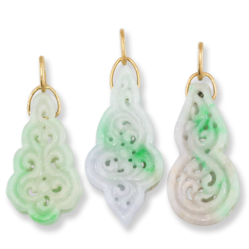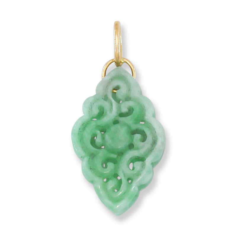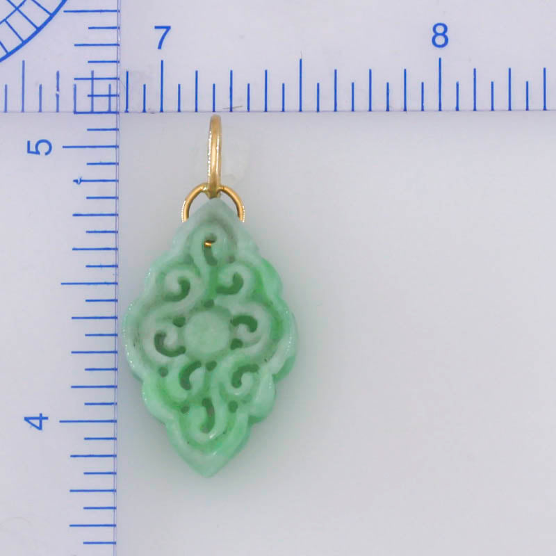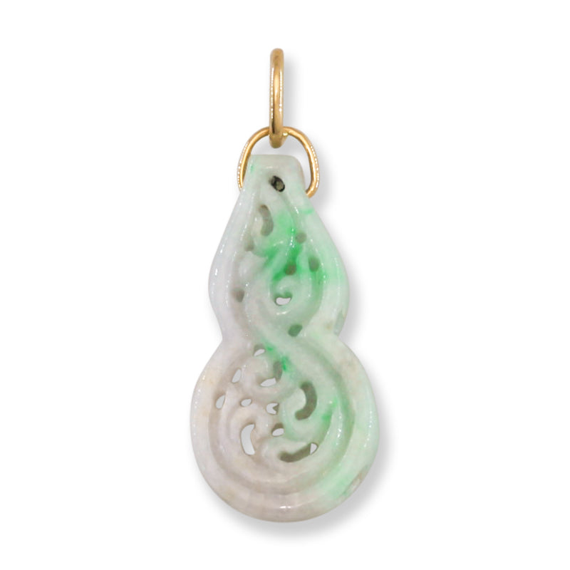 Green and White Jadeite Jade Carved 14K Yellow Gold Pendant | UPC #045408