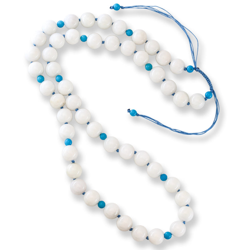 Adjustable White Jadeite Jade and Turquise Bead Necklace | UPC #398993