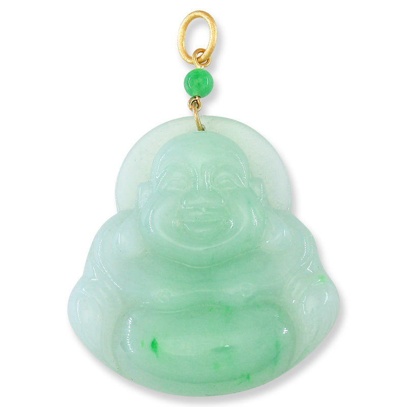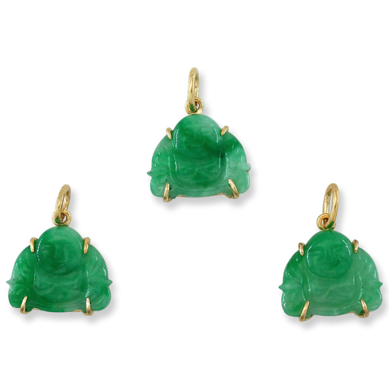 18K Yellow Gold Green Jadeite Jade Carved Buddha Pendant for Women and Men | UPC #395541