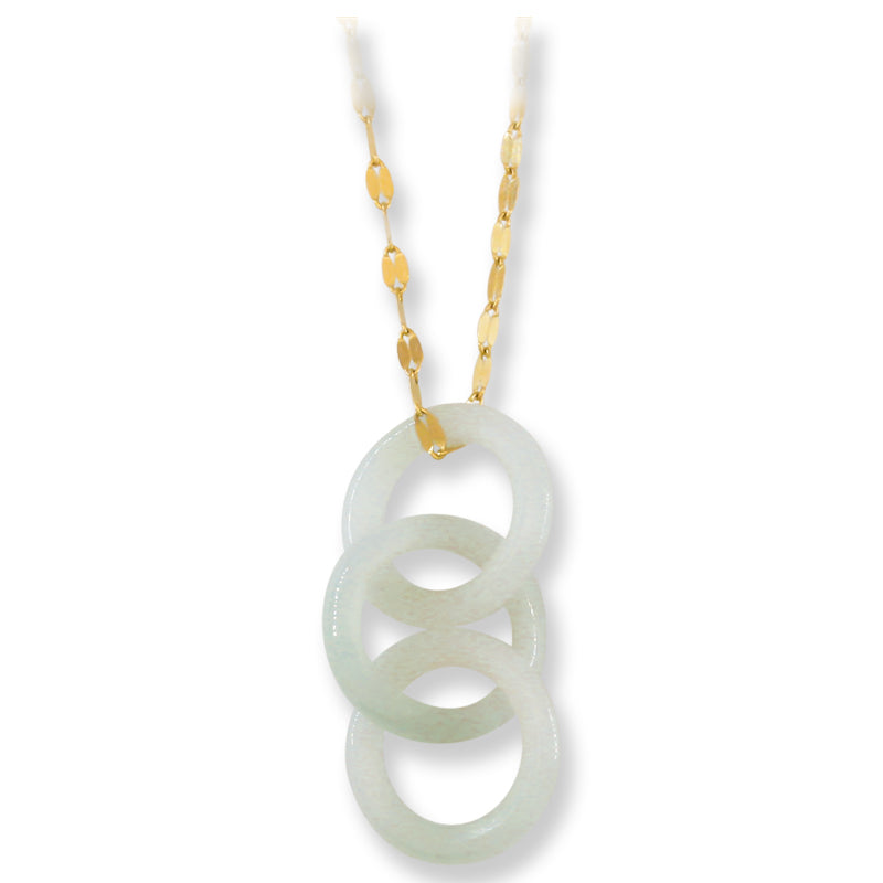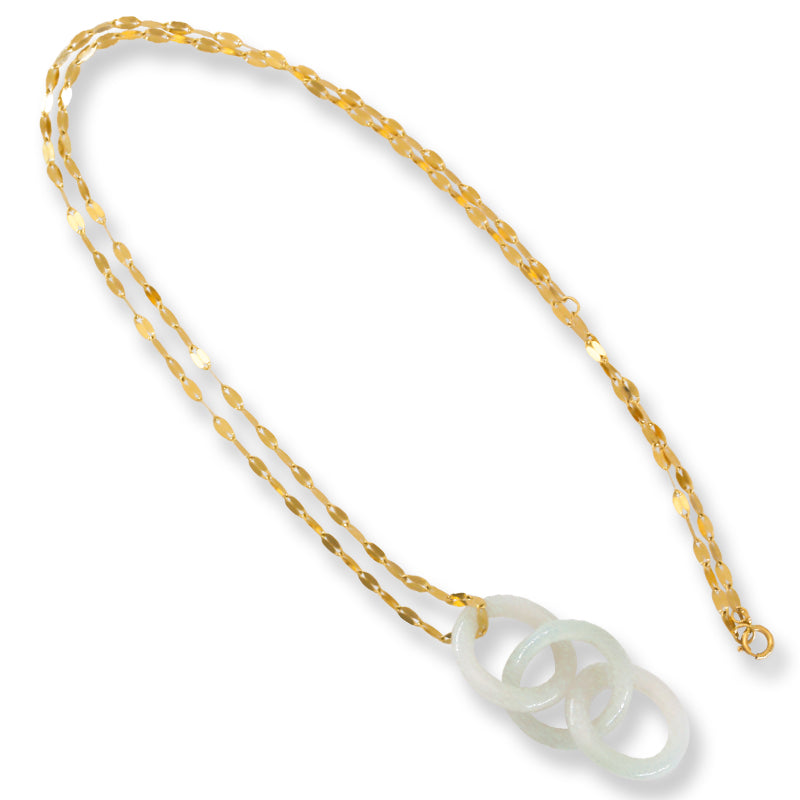 White Jadeite Jade Interlocking Triple Ring 14K Yellow Gold Necklace | UPC #398238