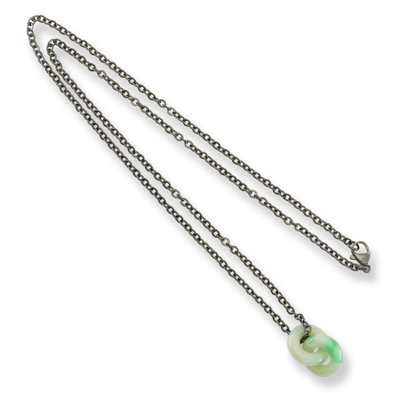 Grey Jadeite Jade Interlocking Double Ring Necklace on 20" Steel Chain | UPC #398764