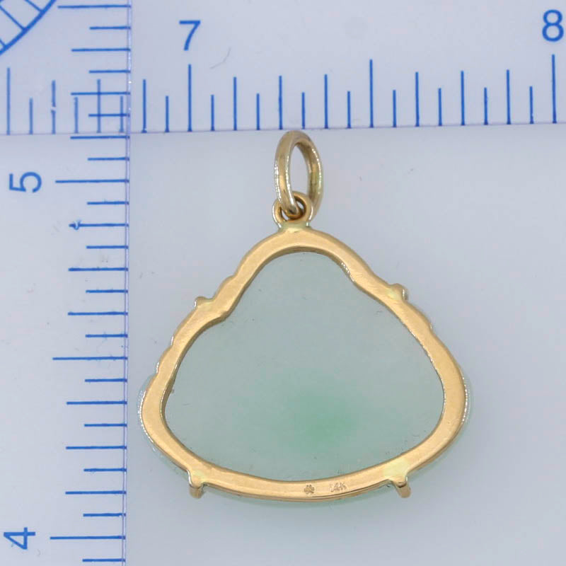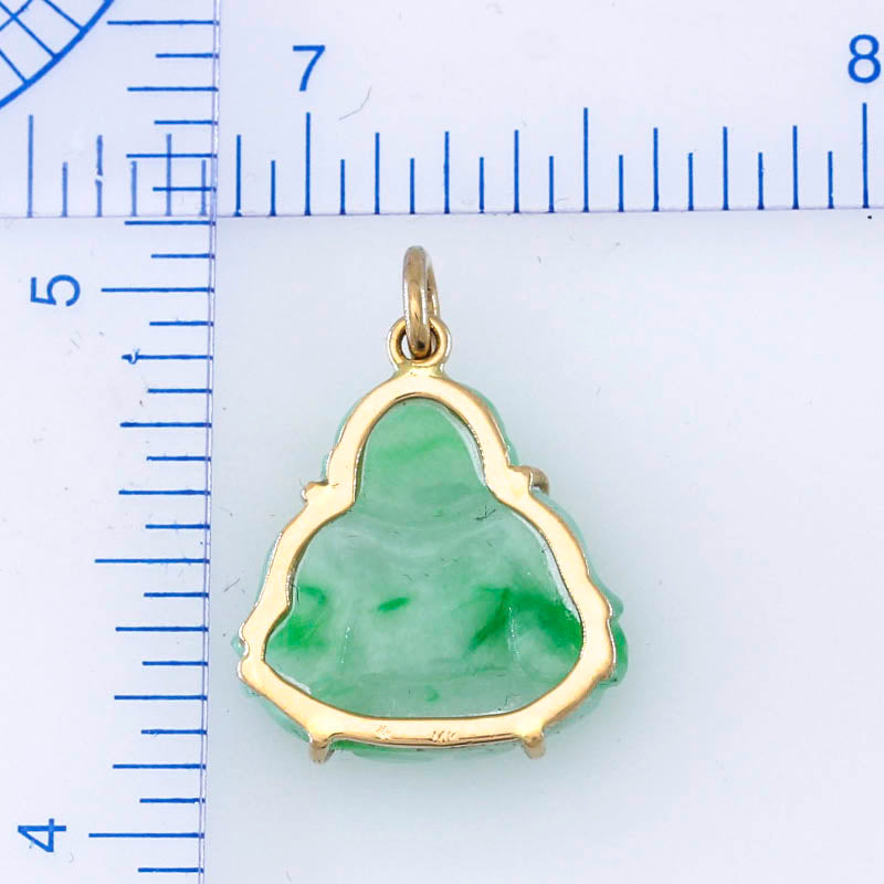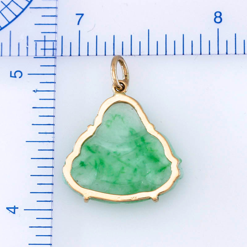 14K Yellow Gold Apple Green Jadeite Jade Pendant | Jade Buddha Carving | UPC #395473