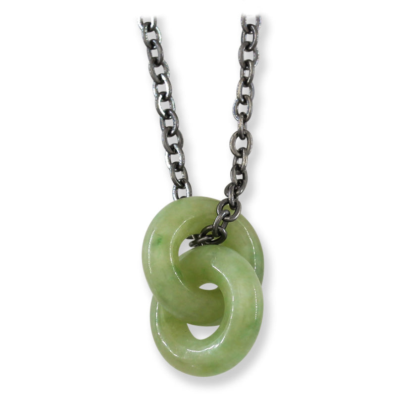 Green Jadeite Jade Interlocking Double Ring Necklace on 20" Steel Chain | UPC #398771