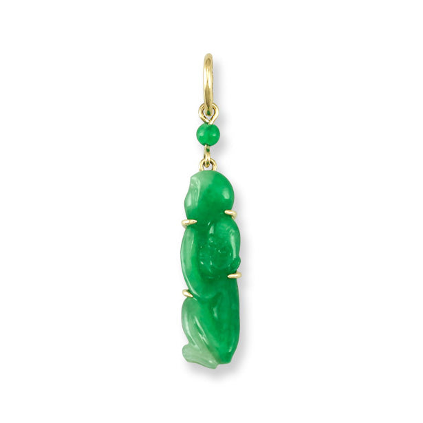 18K YELLOW GOLD GREEN JADEITE JADE CARVED MONKEY PENDANT UPC #348462