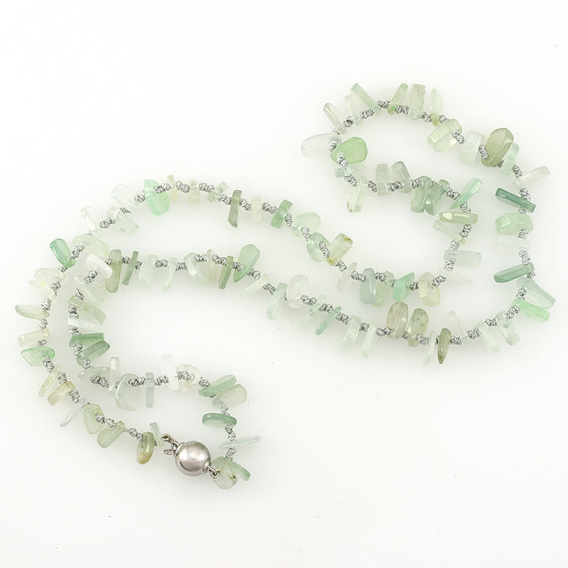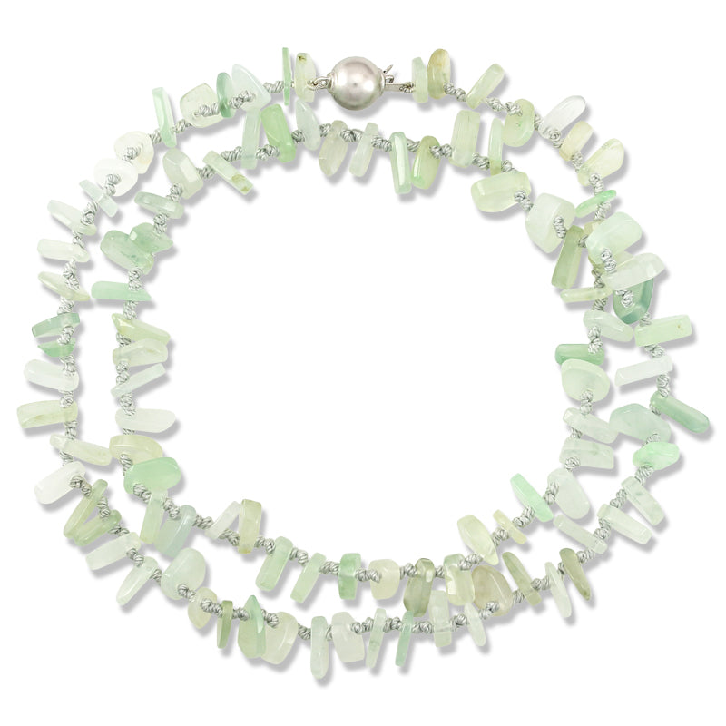 14K White Gold Icy Jade / Water Jadeite Jade Bead Necklace | UPC #351592