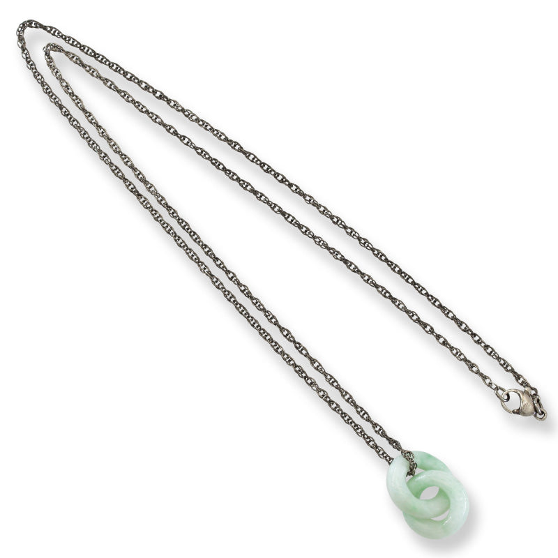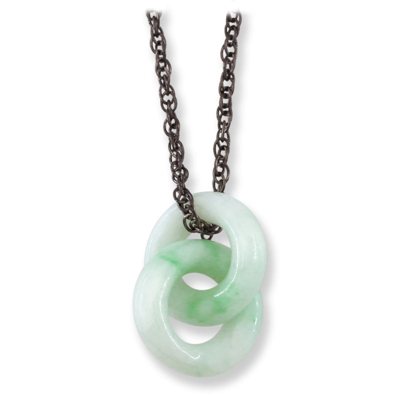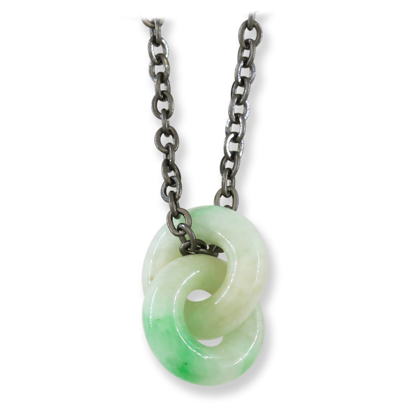 Grey Jadeite Jade Necklace Interlocking Double Ring | Interlocking Circle Necklace | UPC #392748